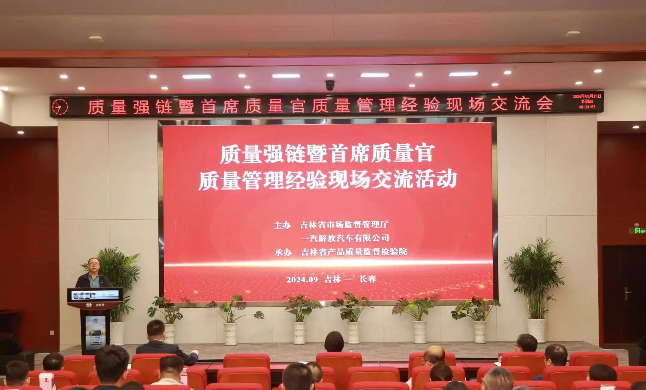 为深入贯彻《质量强国建设纲要》,全面落实市场监管总局质量强企强链部署要求,扎实推进质量强省建设,9月19日,由吉林省市场监管厅与一汽解放汽车有限公司共同主办的吉林省汽车行业质量强链暨首席质量官质量管理经验交流活动在长春成功举办,除吉林本土汽车企业首席质量官外,来自北京、山东、浙江、湖北、江苏等汽车产业链企业质量管理人员代表共计130余人参加了活动。